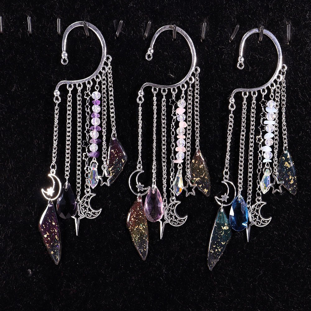 Accented with stunning natural crystals in pink, blue, green, and purple, these delicate Heritage Petite Crystal Ear Hook Earrings are a beautiful tribute to vintage-inspired design. Their charming aesthetic makes them a versatile accessory. Pair them with a simple dress or your favourite casual outfit for a delightful pop of colour.