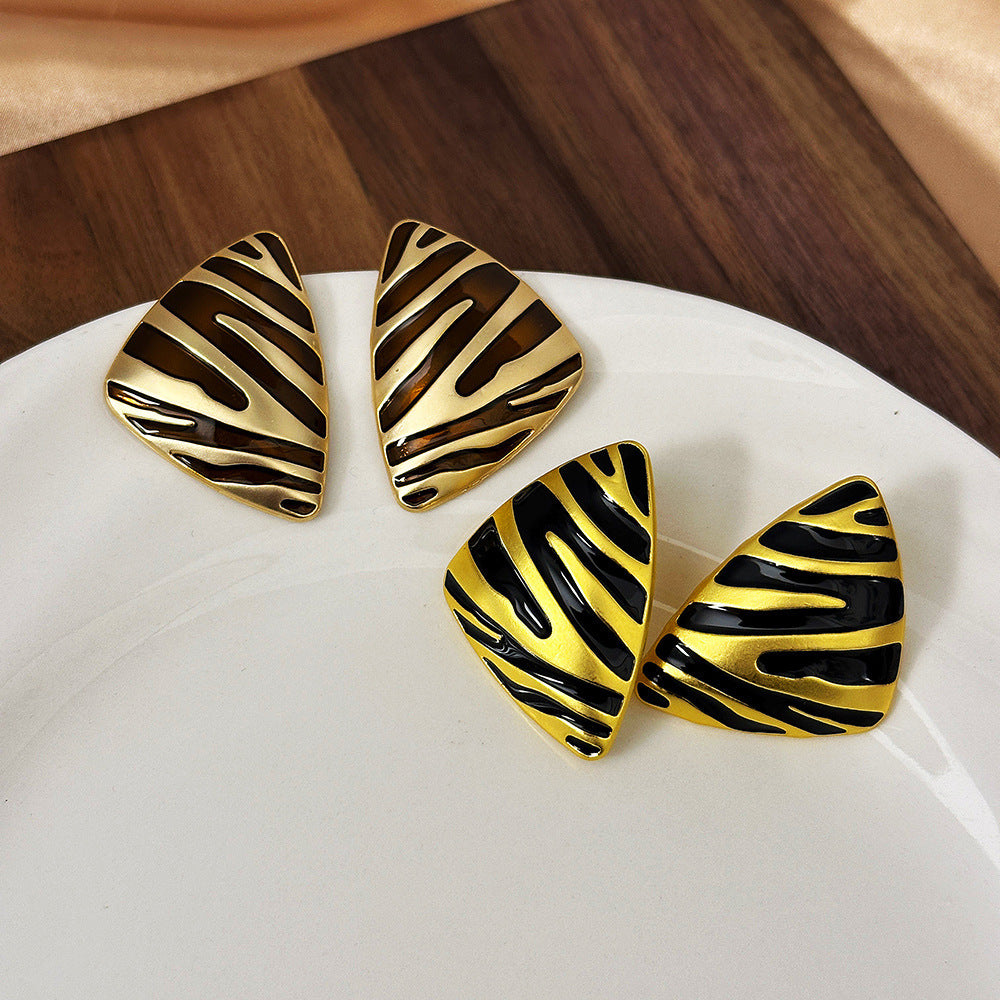 This Throwback Zebra Pattern Drop Earrings showcases a stunning geometric design that adds a touch of flair to your jewellery collection. Crafted from metal, they feature a striking zebra pattern in rich brown and black tones. Their delicate shape makes them a versatile choice for any occasion. Pair them with a simple outfit to let their charm shine through.