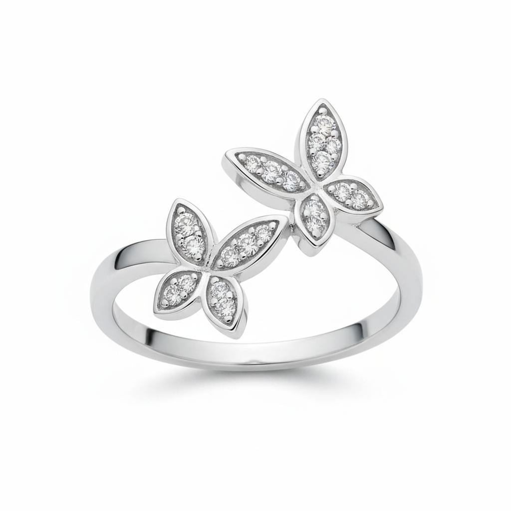 Showcasing stunning detail, the Poised Butterfly Ring is an adjustable piece crafted from sterling silver. Adorned with beautiful gems, the delicate silver mosaic adds a unique touch, making it a charming choice for any jewellery lover. Style it with a simple outfit to let this exquisite ring shine as the focal point.