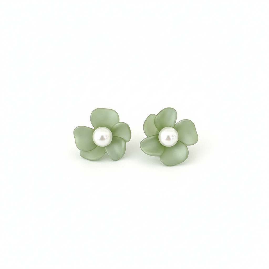 Accent your style with these stunning Pearl Flower Stud Earrings. Crafted from beautiful Fine Sterling Silver, they showcase delicate geometric flower designs in a charming mix of white, beige, and green. These earrings are perfect for embracing the beauty of spring and summer, adding a subtle yet eye-catching detail to your everyday look. Pair them with your favourite casual outfits for a refreshing touch.