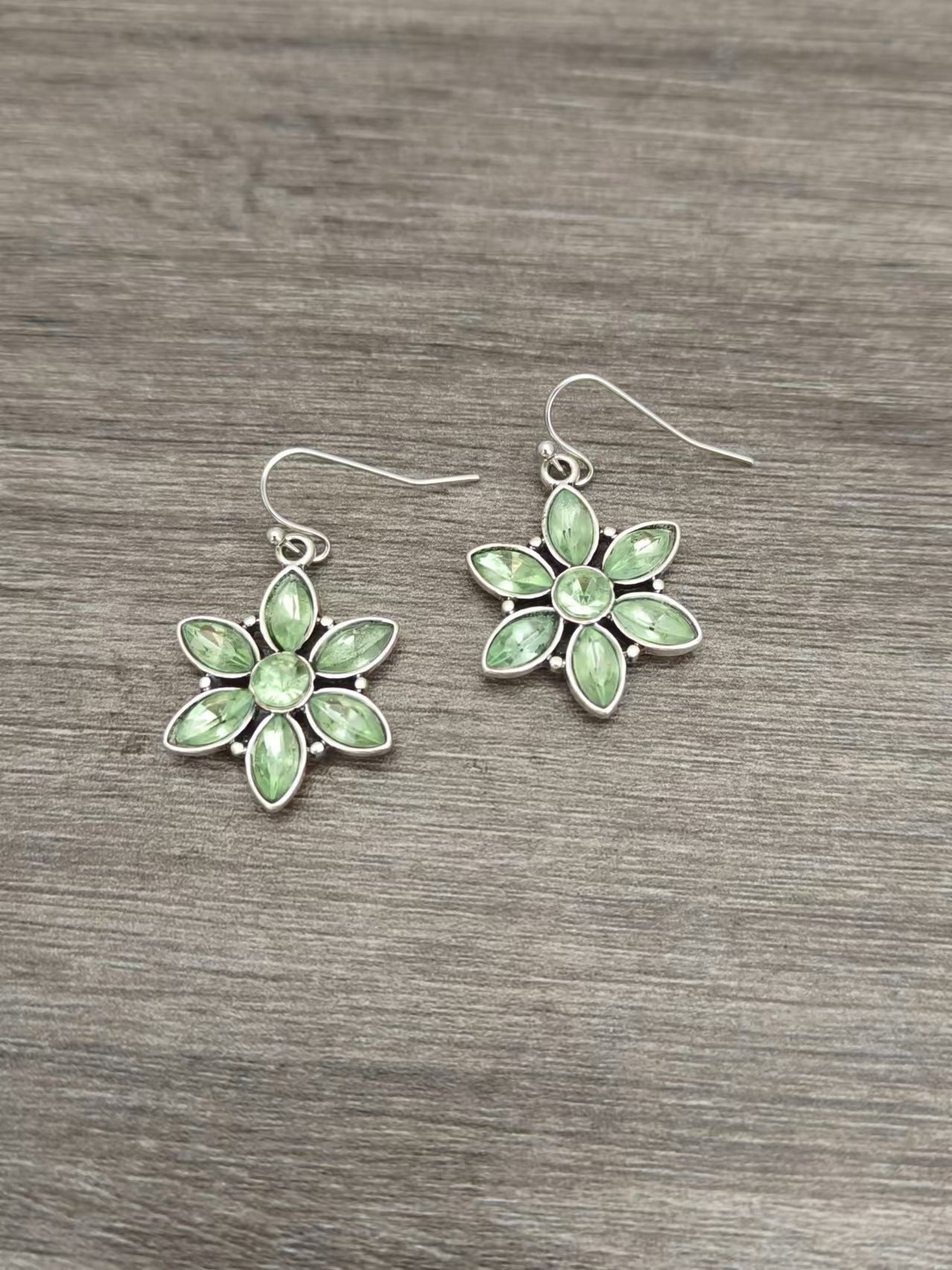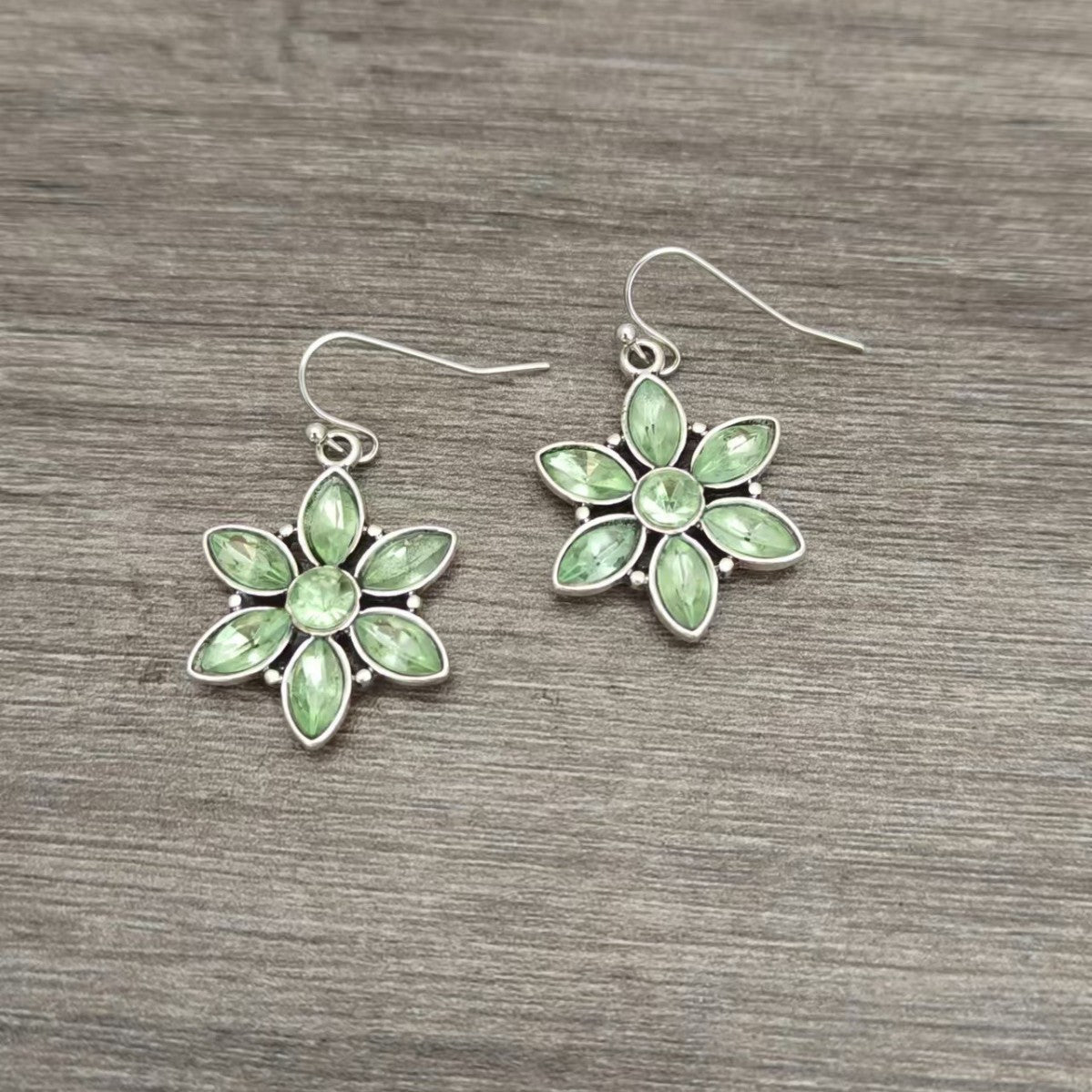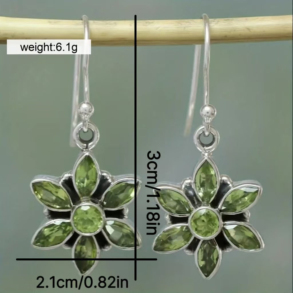 Hoping to find the perfect gift? The stunning Earthy Green Crystal Flower Pendant Earrings feature delicate petals and a captivating green crystal that adds a vibrant touch to your look. These graceful earrings are perfect for brightening your everyday outfits or adding a whimsical flair for a special gathering.