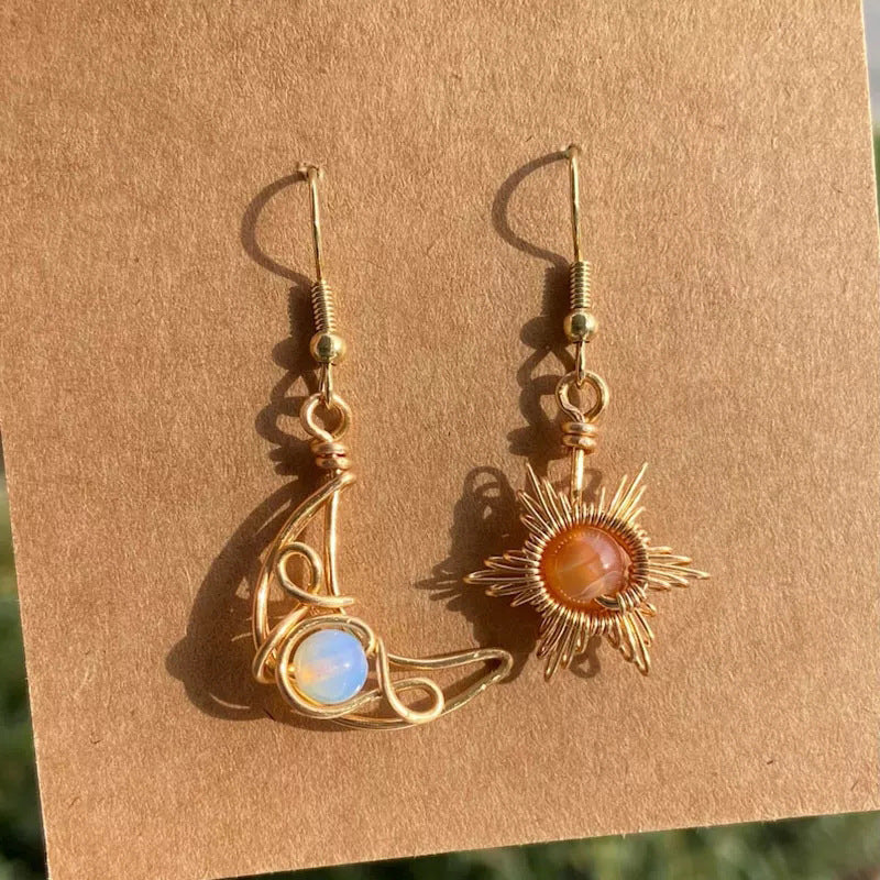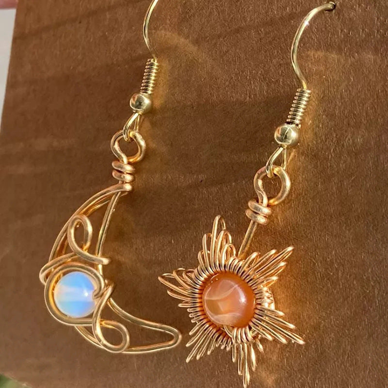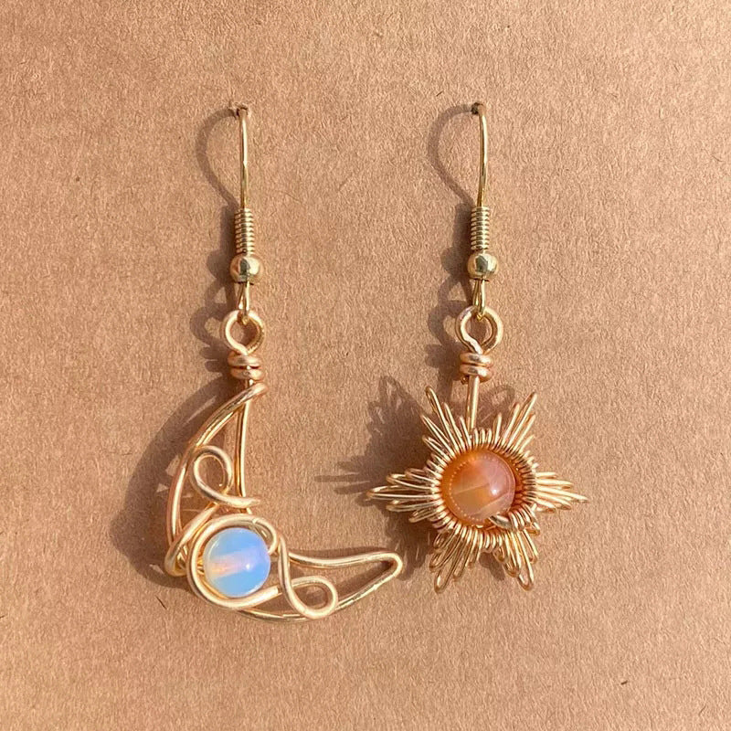 Thoughtfully created, these stunning Boho Sun Moon Earrings showcase a captivating geometric design that beautifully represents celestial elements. Crafted from metal, they offer a whimsical touch to your ensemble. Pair them with a flowy dress or your favourite casual outfit for a beautiful finish to your look.
