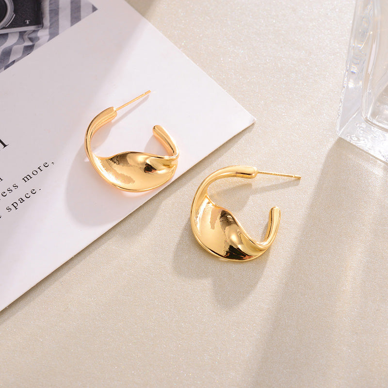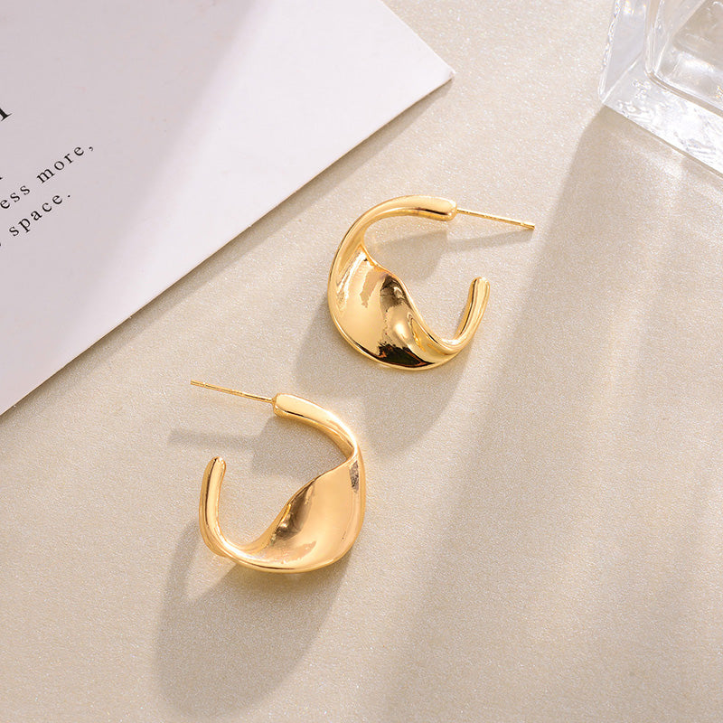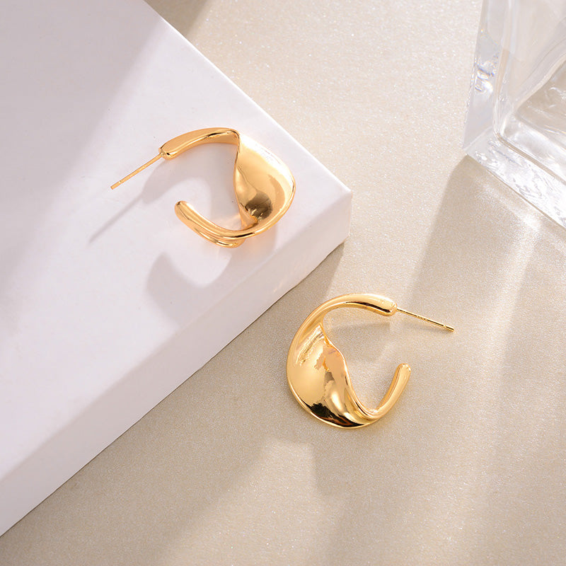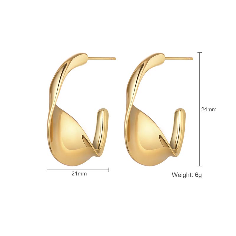 This minimalist design features Chic Gold Colour Hoop Earrings that showcase a stunning twist design, beautifully capturing the light. Weighing just 6g and measuring 21mm by 24mm, they are lightweight and comfortable for all-day wear. Their warm golden hue makes them an ideal choice for everyday wear or special outings. Pair them with a simple top to let these earrings shine.
