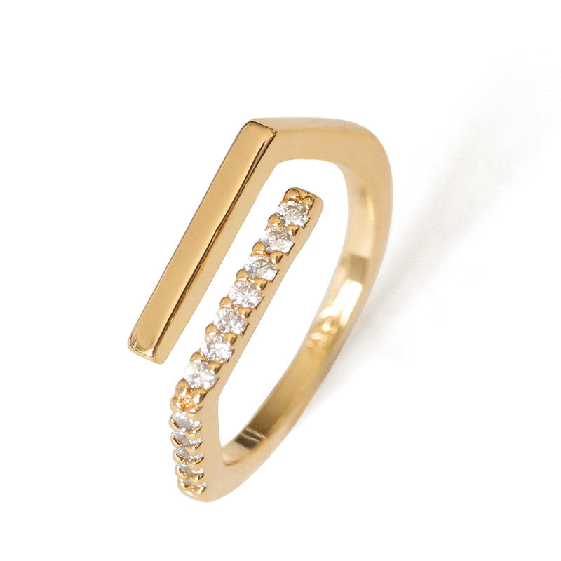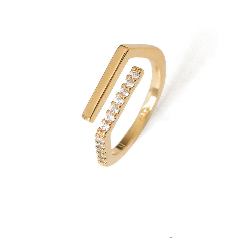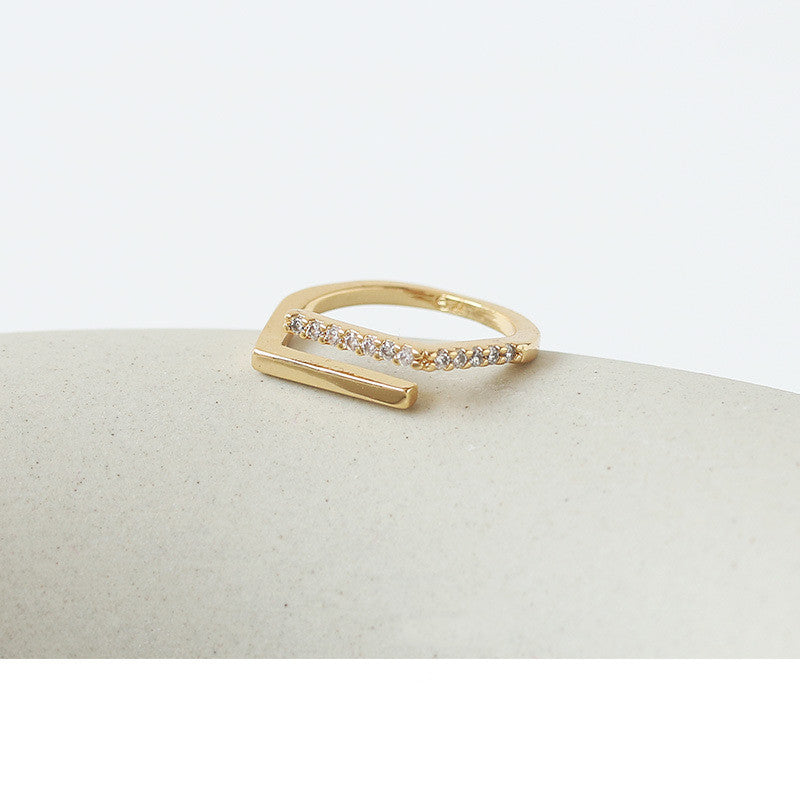 Meticulously made, this stunning geometric ring showcases delicate lines crafted from brass and adorned with sparkling zircon. With an inner diameter of 16.8mm, it’s perfect for stacking or wearing solo. Pair it with other rings for a chic layered look, or let it shine on its own for a minimalist statement.