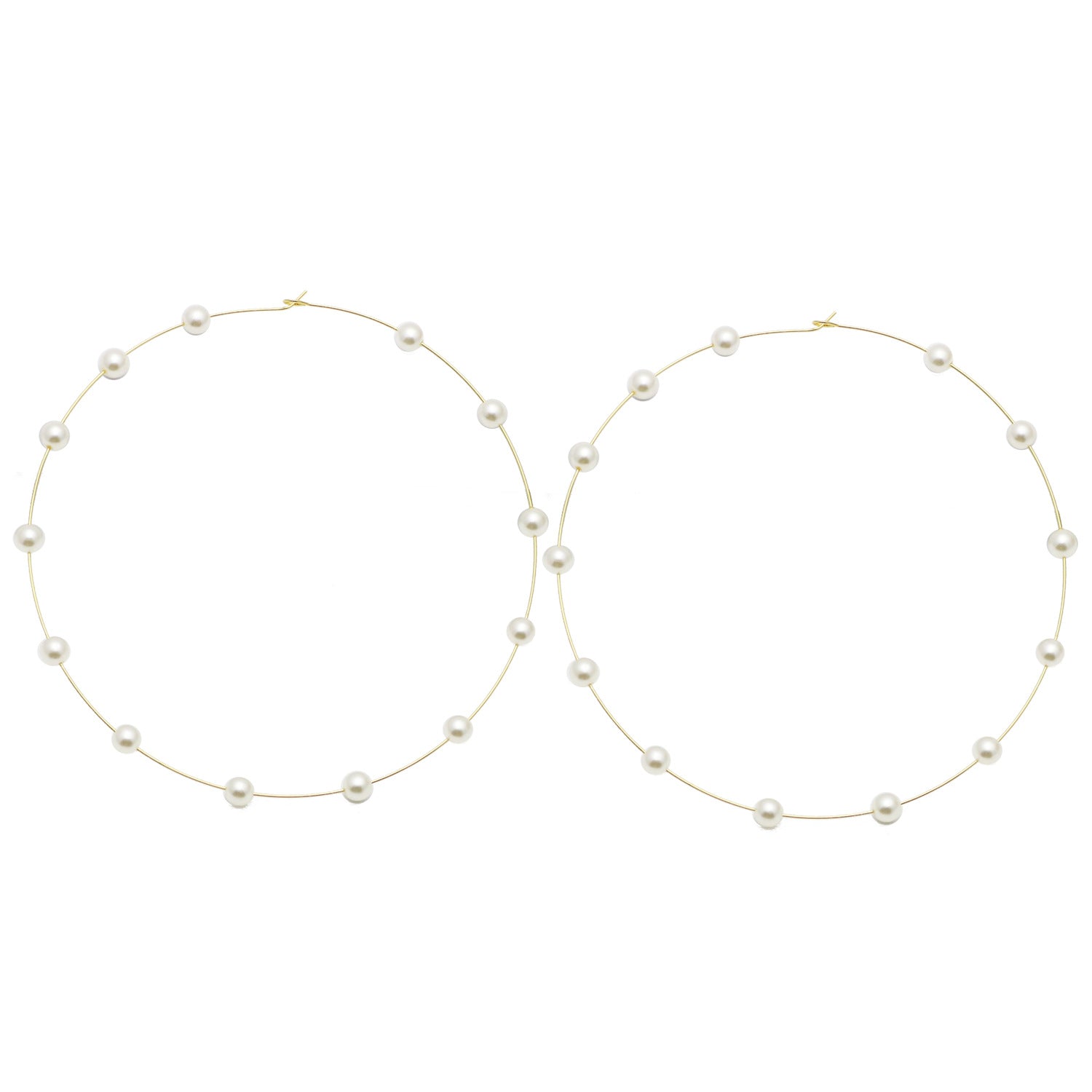Finished with an eye-catching electroplated finish, these stunning Statement Electroplated Pearl Large Hoop Earrings are available in gold, silver, or rose gold. With a generous diameter of 11.5cm, they beautifully catch the light. Style them with a simple top for a sophisticated look that's sure to impress.
