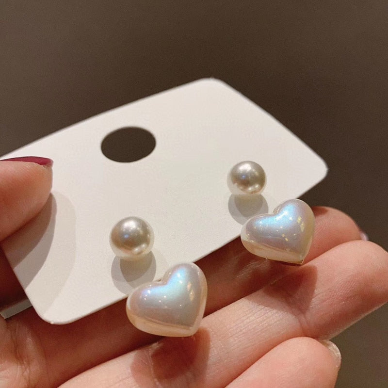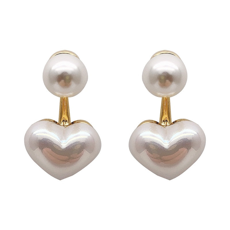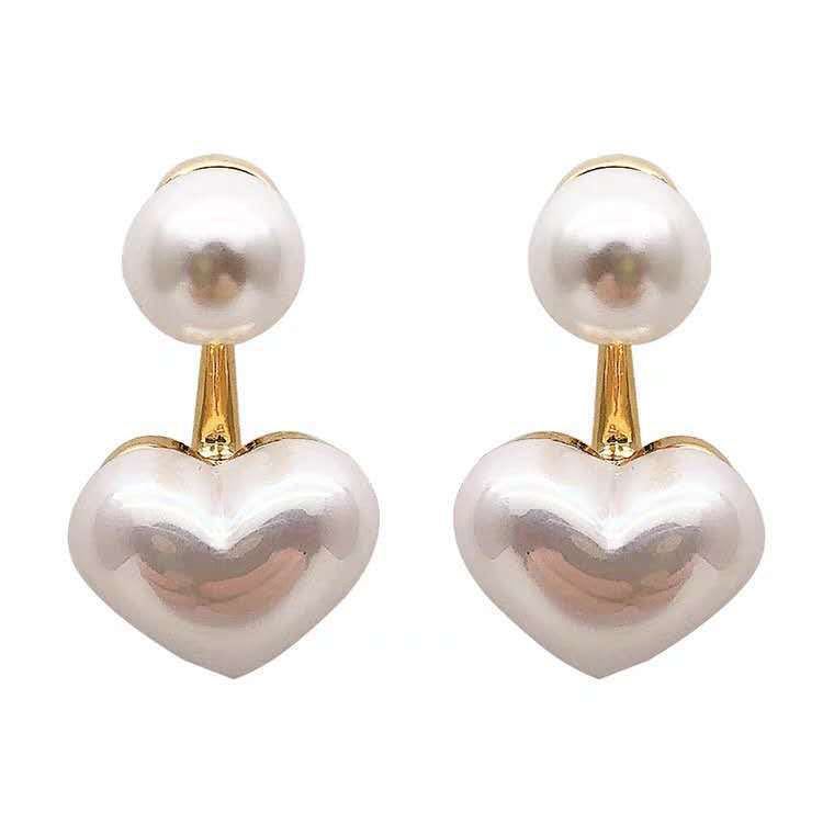 Handcrafted with care, the Dainty Pearl Love Stud Earrings are a stunning expression of affection, featuring a charming love motif inlaid with artificial gems. Measuring just the right size for everyday wear, these earrings beautifully brighten up your casual outfits or add a sweet detail to your evening attire.