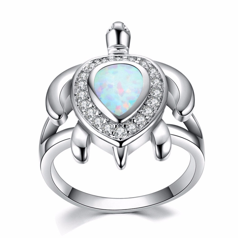 Complemented by a captivating blend of white and blue hues, this Heritage Gold Plated White Fire Opal Turtle Ring is a stunning piece that celebrates special moments. Featuring an antique gold plating and an inlaid artificial gemstone, it is available in sizes No. 6, No. 7, No. 8, and No. 9. Style it with your favourite casual outfit or let it shine during special occasions for a unique touch.