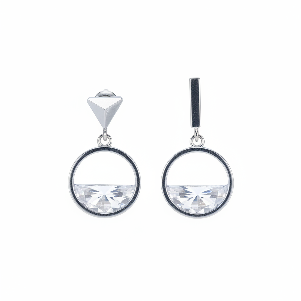 Sterling Silver Stud Earrings with Zirconium Diamonds - Contemporary