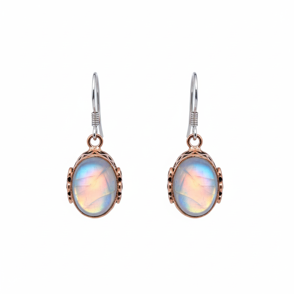 Meet the Stunning Copper Multicoloured Moonstone Teardrop Earrings. These vintage-inspired earrings feature beautiful moonstones that shift hues with the light, creating a captivating effect. The unique drop shape adds a delicate touch to your look. Style them with a simple blouse for a refined finish or a flowing dress for a more bohemian vibe. Each pair is individually packed, making them a lovely gift for someone special or a treat for yourself.