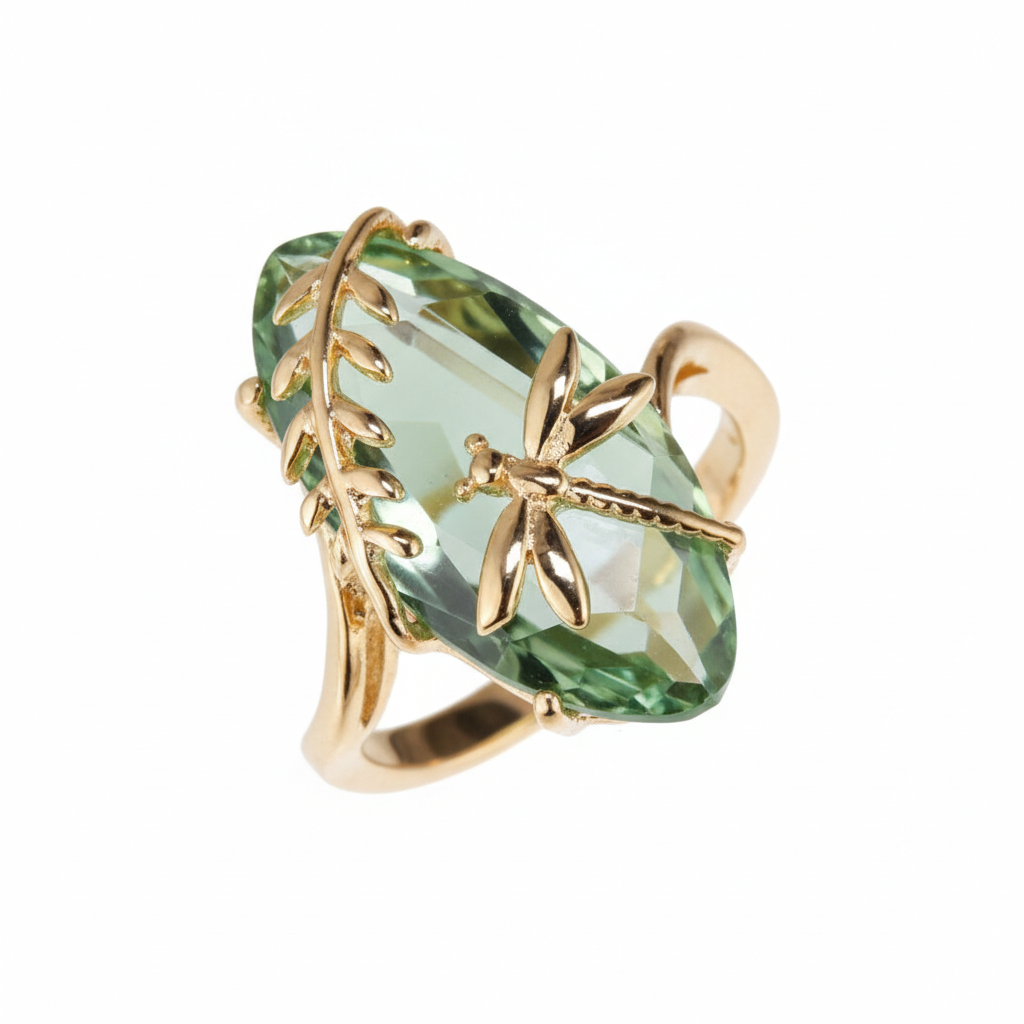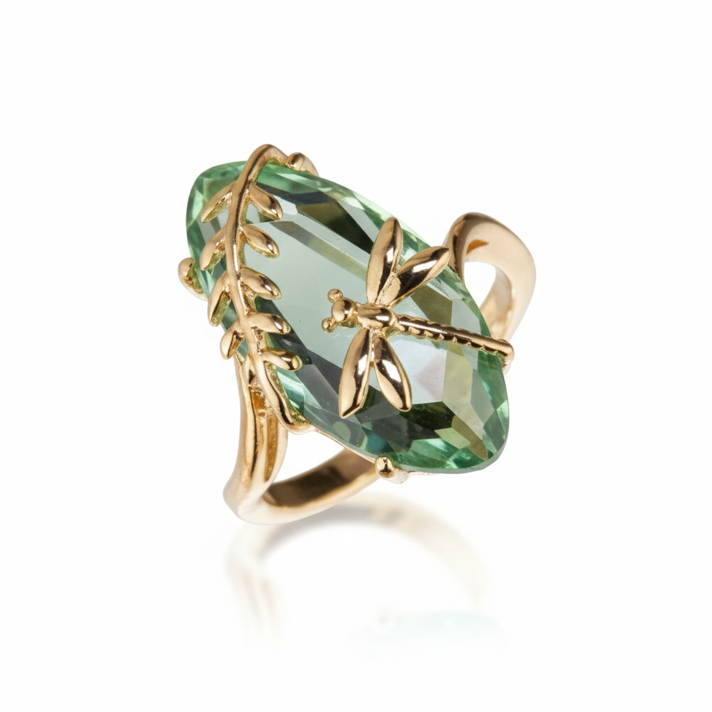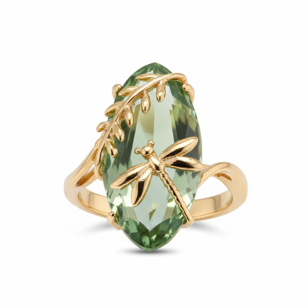Contemporary and chic, the stunning Delicate Olive Green Ring features a beautiful gold and silver finish. Weighing approximately 4.8g, its delicate design adds a touch of sophistication. Style it with a simple outfit to let its unique colour truly shine.