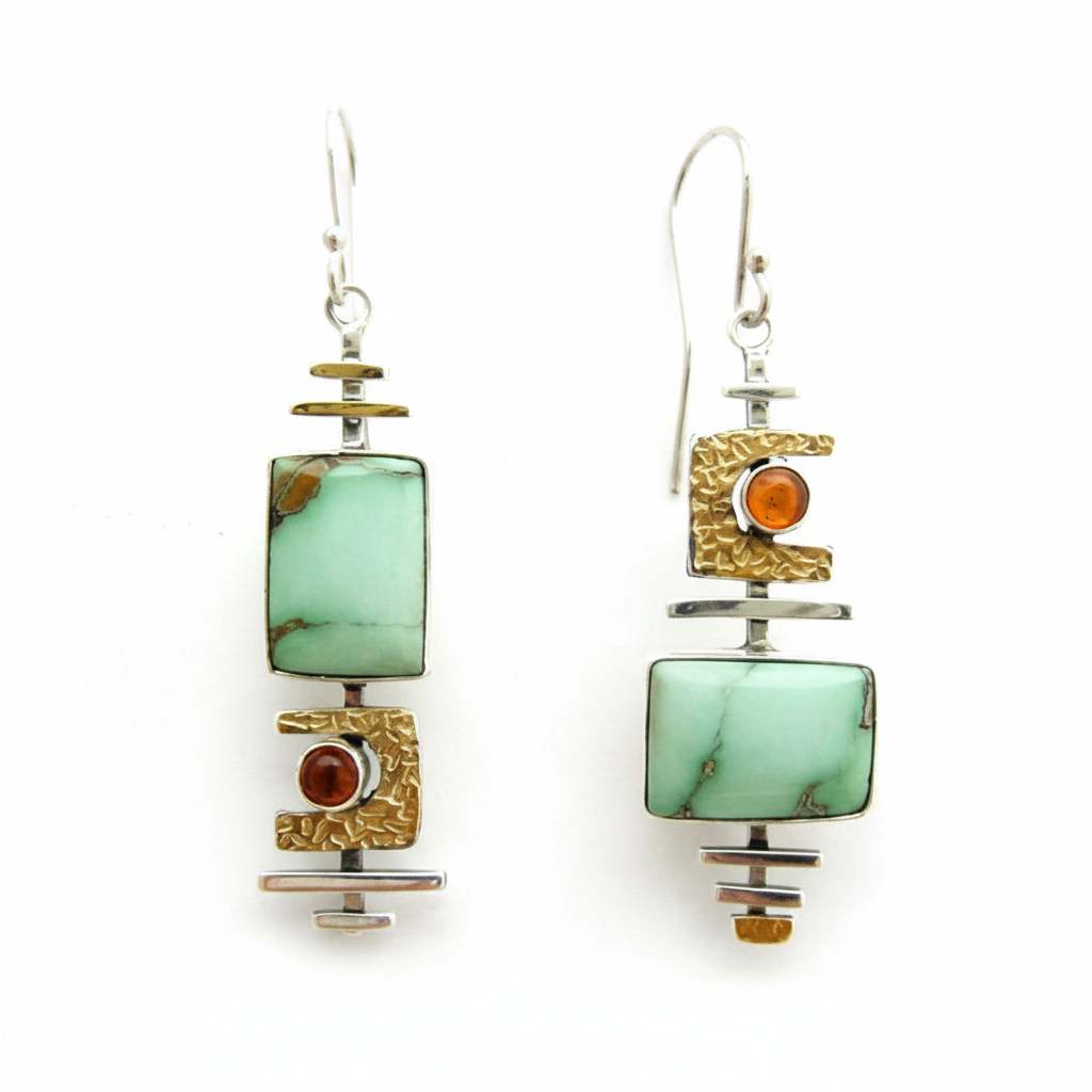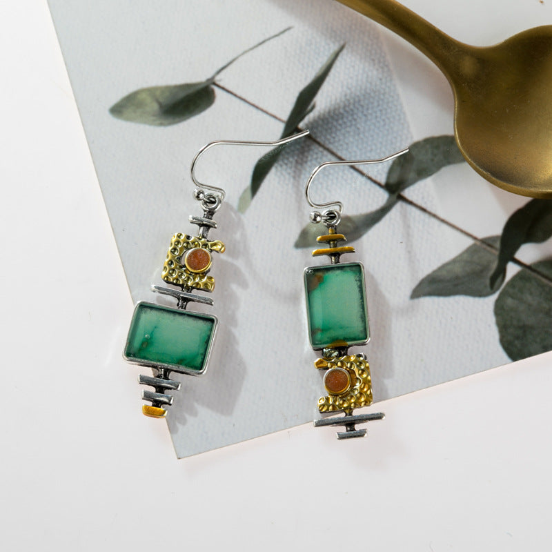 Showcasing a bold and striking design, these exquisite Nostalgic Turquoise Dichroic Earrings are made with dichroic glass, featuring unique colour separation that captures the eye. Measuring 4.7cm by 1.4cm, they add a pop of colour to any ensemble. Pair them with a simple dress or a casual top to let these stunning earrings shine.
