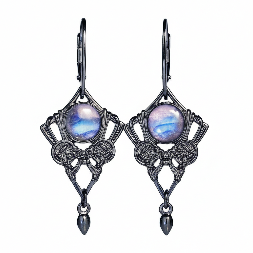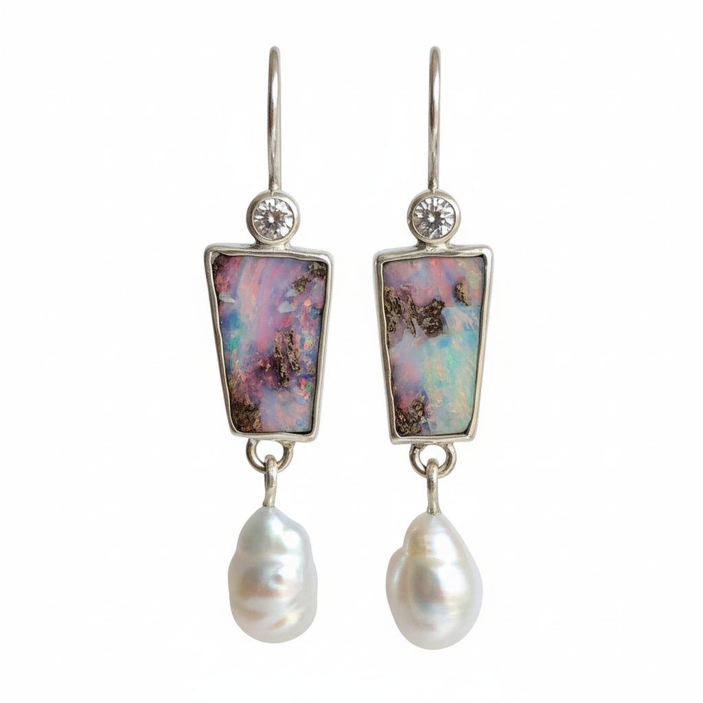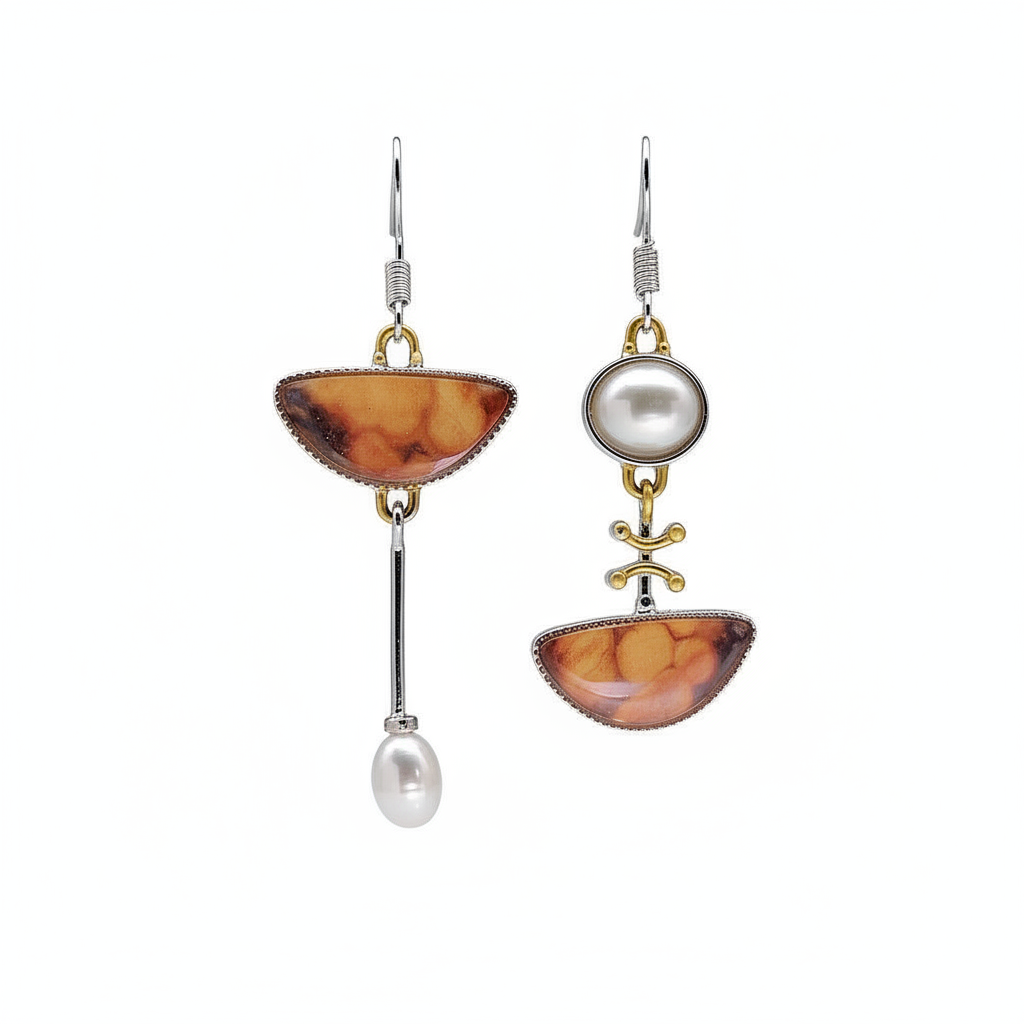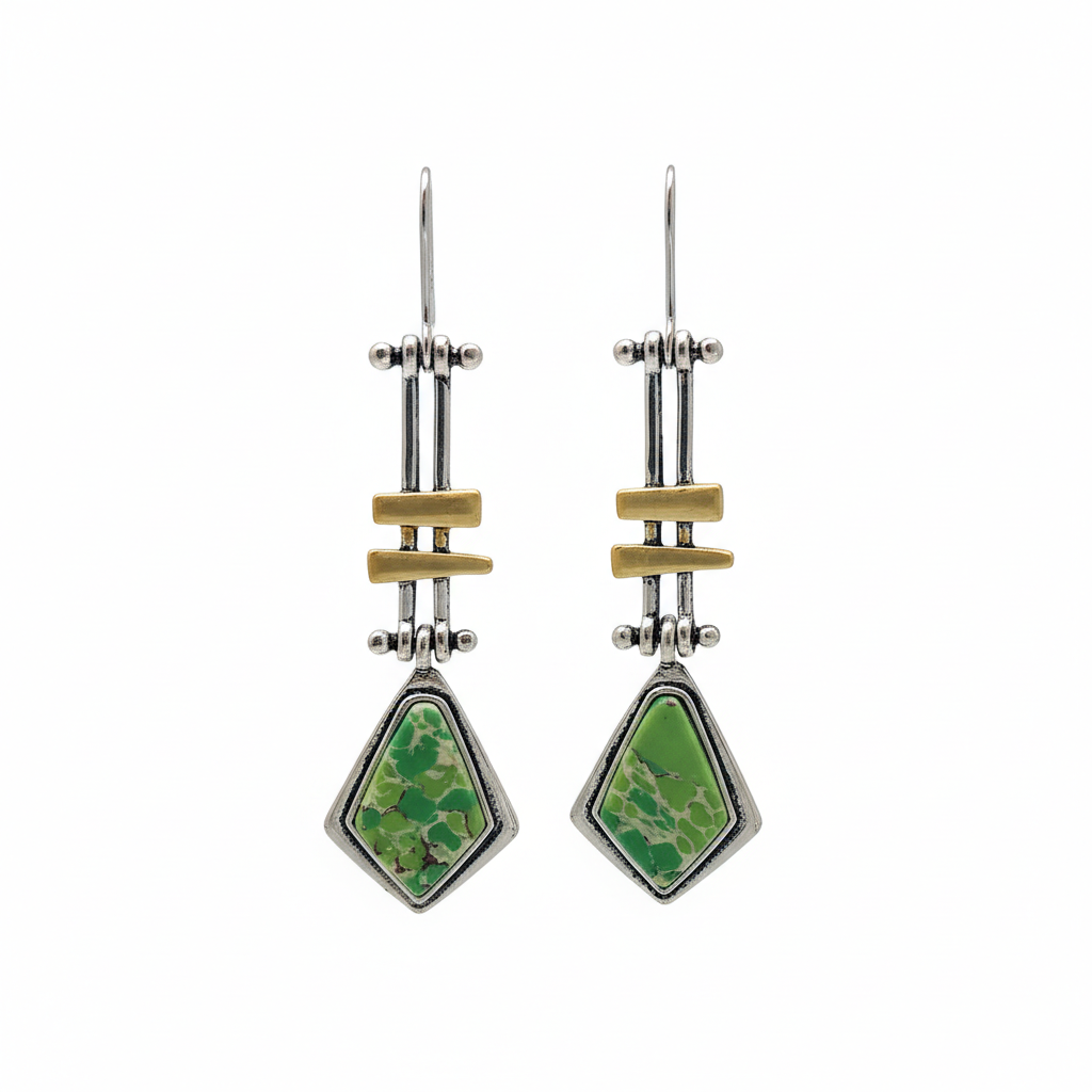 Discover the Heritage Turquoise Moonstone Geometric Drop Earrings, showcasing stunning hues of turquoise and moonstone in a captivating geometric design. Measuring between 4.0cm and 5.9cm in length, these earrings add a unique touch to your ensemble. Pair them with a simple dress or a casual outfit to let these earrings shine.